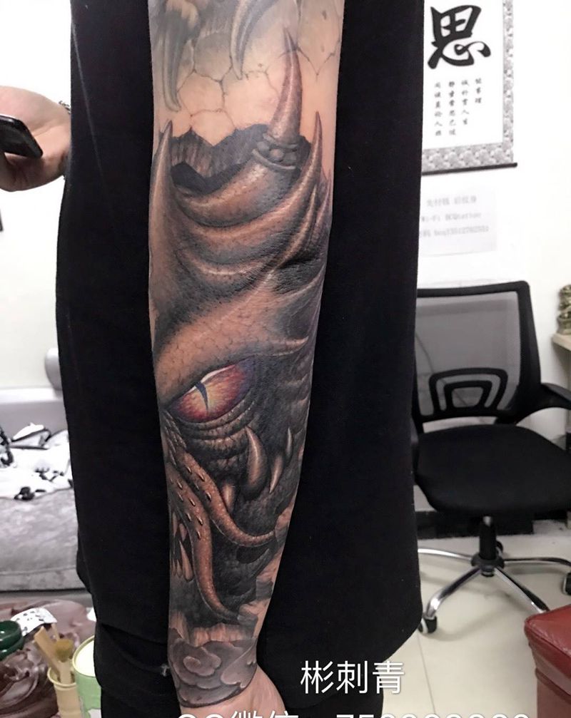 花臂未完 下次再续 内测是机械 唐狮是我去年的作品纹身图片