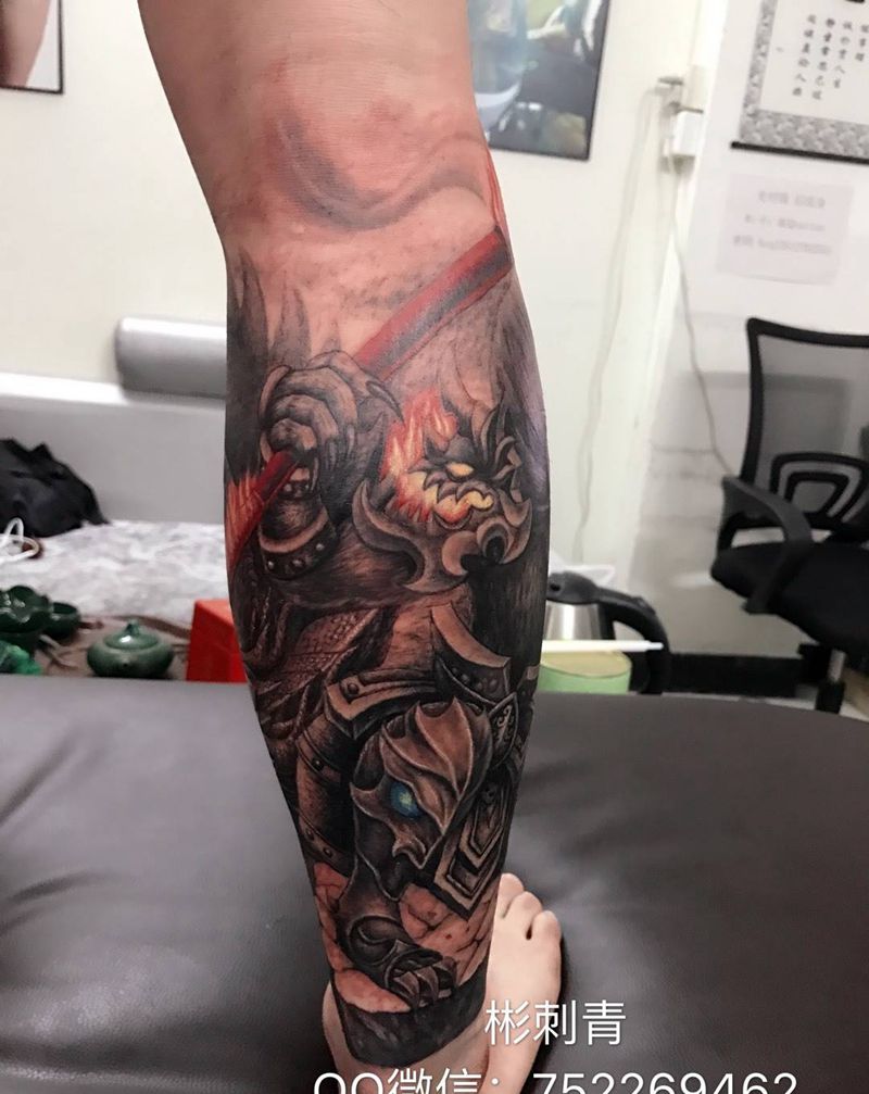 • T网红王老大花腿龙纹身图片_腿部新传统纹身图案
