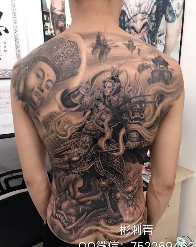 • 黑灰满背纹身图案