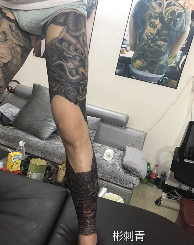 • T网红王老大花腿龙纹身图片_腿部新传统纹身图案