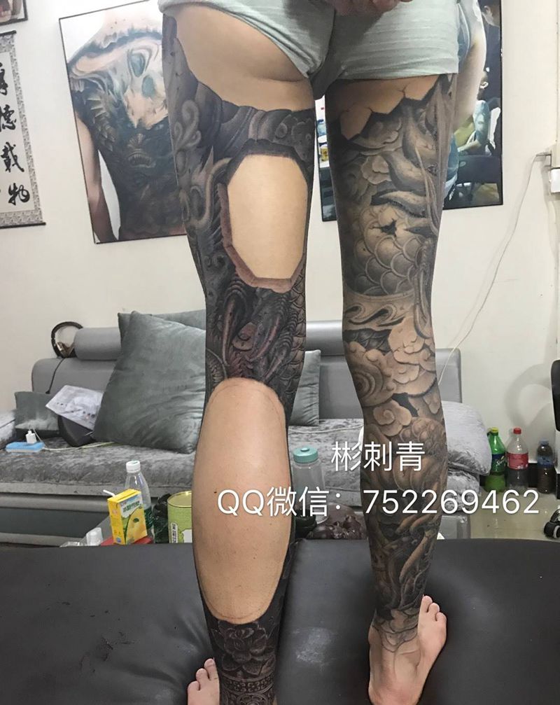 • T网红王老大花腿龙纹身图片_腿部新传统纹身图案