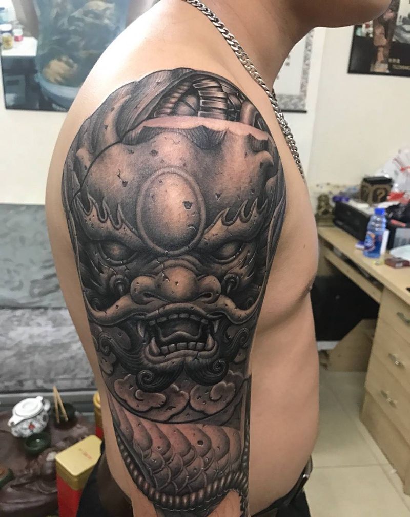 当前位置: 首页 >广东省广州市纹身店-彬刺青纹身图案>临摹岳恒老师的雕龙臂纹身图片