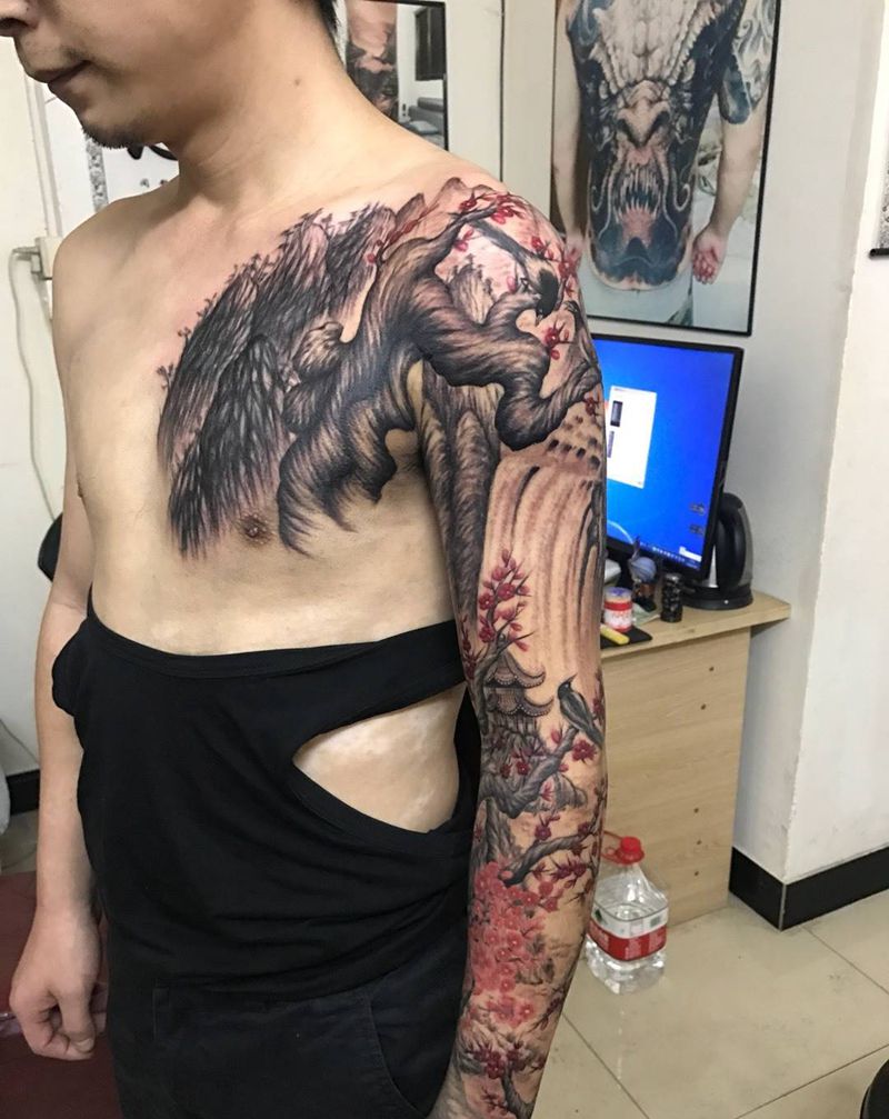• 男性大花胸_42张优秀的男性大花胸纹身图案图片