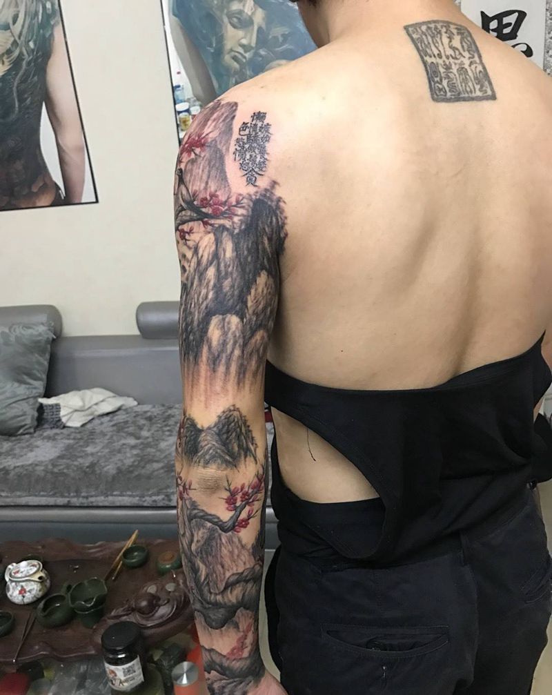 当前位置: 首页 >广东省广州市纹身店-彬刺青纹身图案>梅花臂 遮盖作品纹身图片