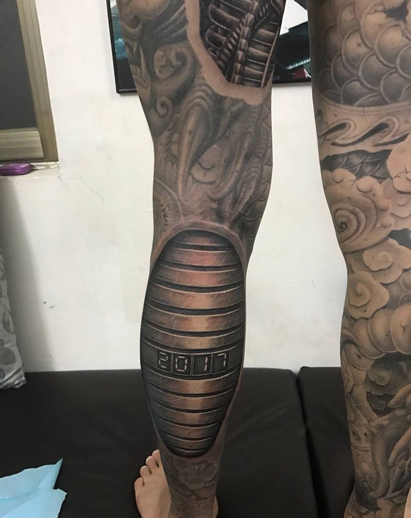 • T网红王老大花腿龙纹身图片_腿部新传统纹身图案