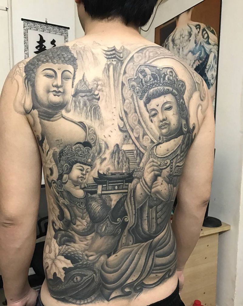 家庭生肖佛系列满背纹身图片_成品手稿背部欧美传统写实原创纹身图案
