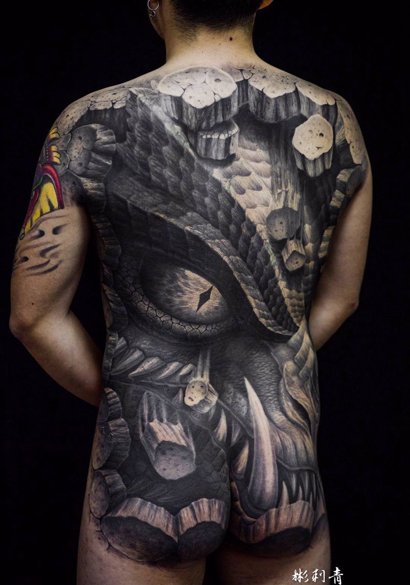 【睡龙苏醒3】恢复后纹身图片_背部臀部欧美写实新传统纹身图案