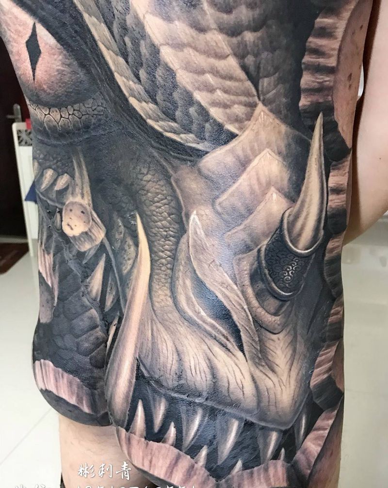 当前位置: 首页 >广东省广州市纹身店-彬刺青纹身图案>【睡龙苏醒】三纹身图片_背部臀部新传统欧美写实纹身图案