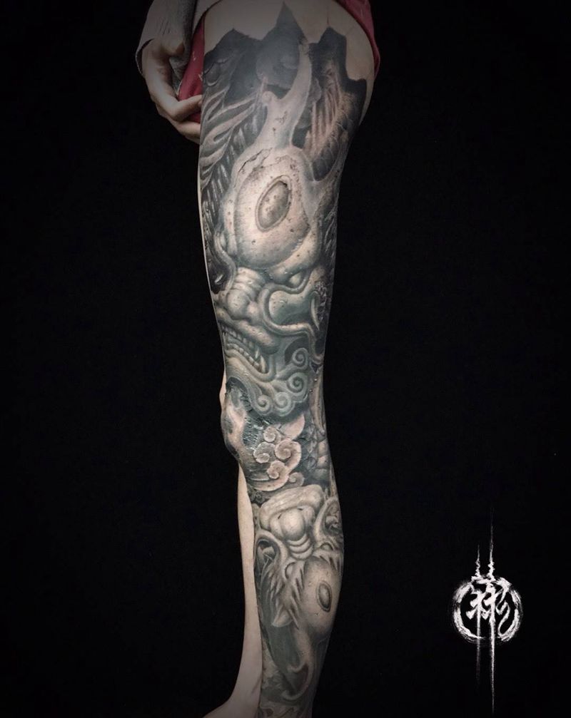 • T网红王老大花腿龙纹身图片_腿部新传统纹身图案