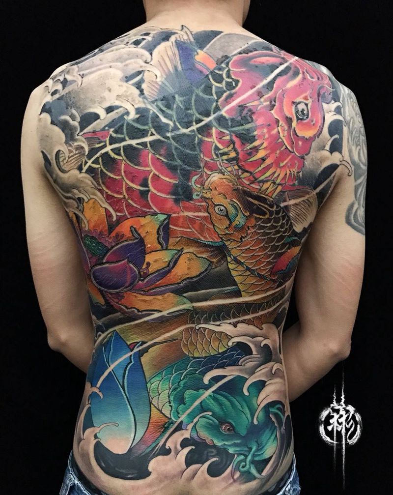 小凯作品纹身图片_肩部背部新传统水彩纹身图案