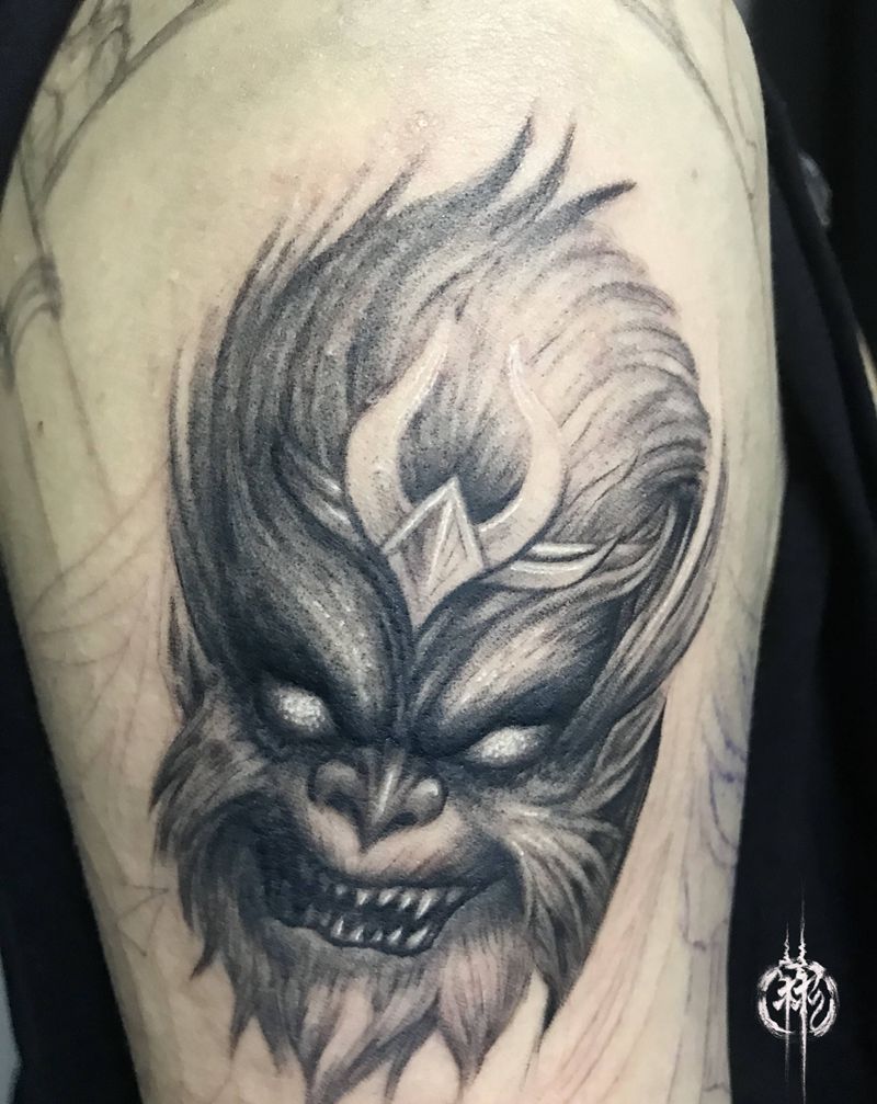 当前位置: 首页 >广东省广州市纹身店-彬刺青纹身图案>妖猴花臂纹身图片_手臂手部欧美写实新传统纹身图案