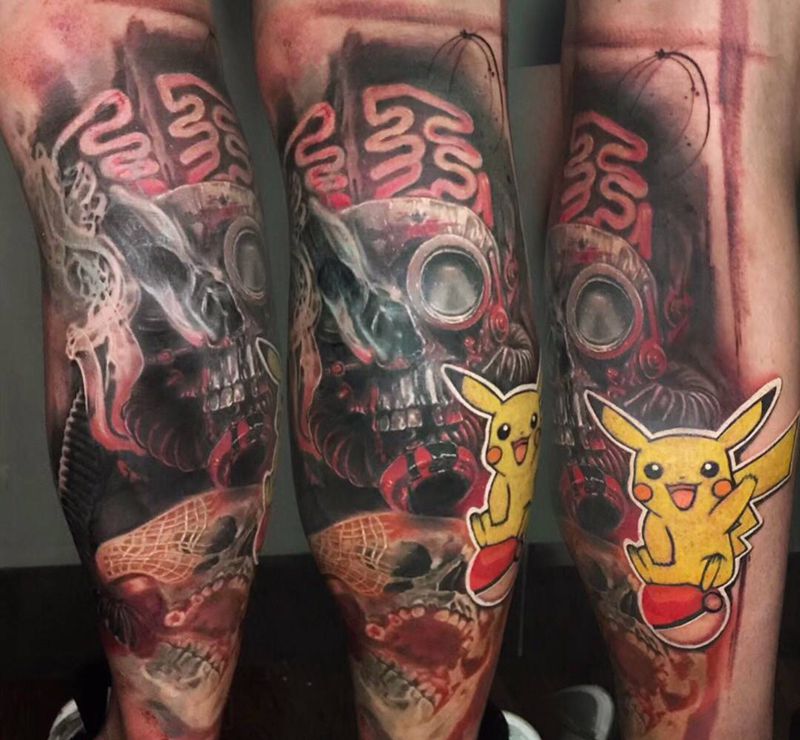 蒸汽皮卡丘纹身图片_欧美写实纹身图案