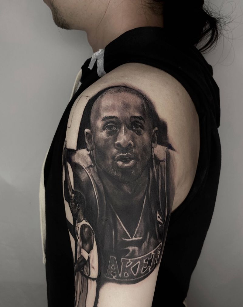 当前位置: 首页 >广东省广州市纹身店-Leeventattoo纹身图案>科比纹身图片_欧美写实科比纹身图案