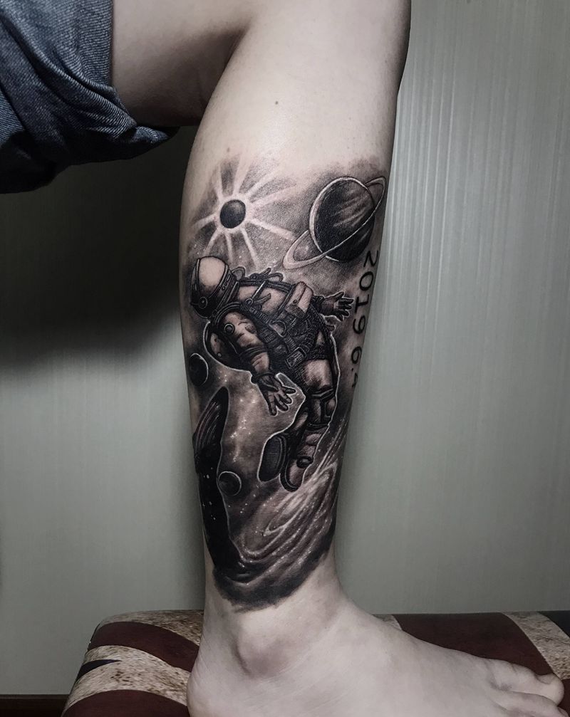 |银河传送门 遮盖|纹身图片_腿部脚部欧美写实宇宙星空宇航员纹身图案