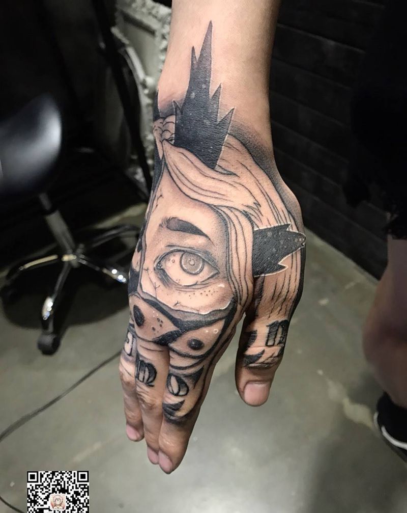 睛纹身图片_成品手部清新写实肖像欧美几何人物鬼神植物纹身图案