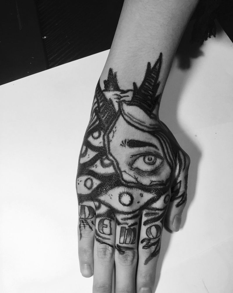 睛纹身图片_成品手部清新写实肖像欧美几何人物鬼神植物纹身图案