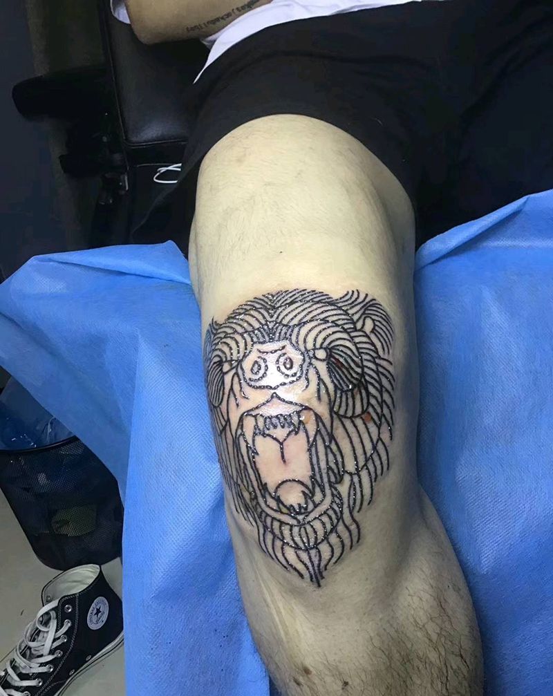 • T网红王老大花腿龙纹身图片_腿部新传统纹身图案