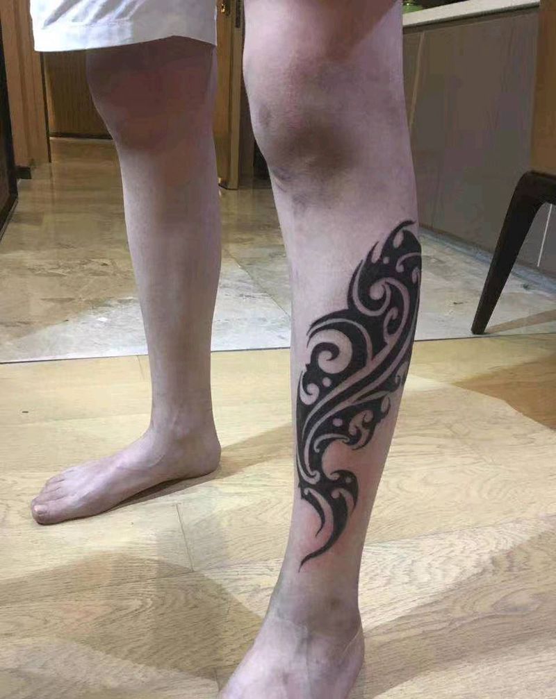 • T网红王老大花腿龙纹身图片_腿部新传统纹身图案