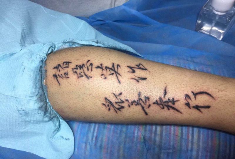 当前位置: 首页 >广东省广州市纹身店-TNT tattoo纹身图案>水墨书法纹身图片_传统腿部纹身图案