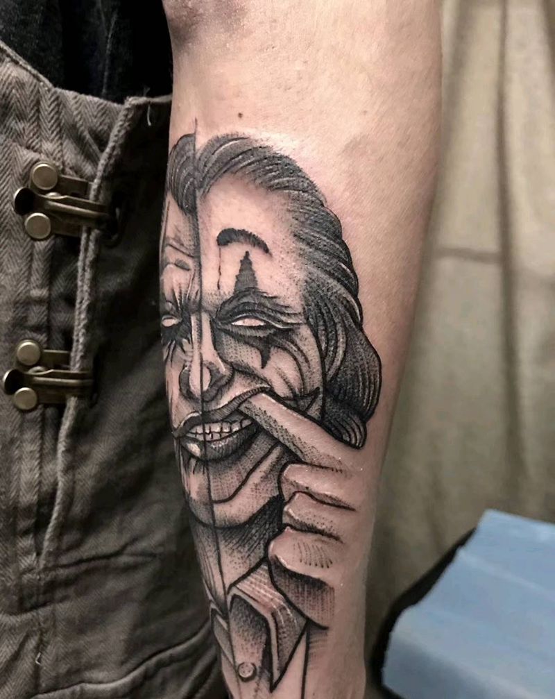 小丑纹身图片_点刺欧美写实纹身图案