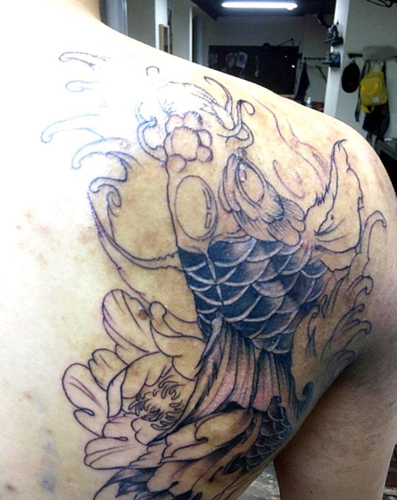 当前位置: 首页 >广东省广州市纹身店-TNT tattoo纹身图案>胎记遮盖,特价鲫鱼。纹身图片
