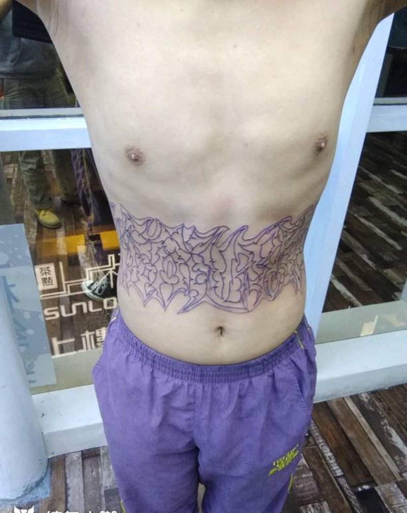 • T关于私处得爱!纹身图片_成品腹部清新字符图腾纹身图案