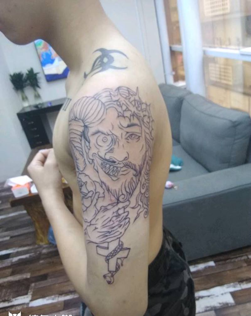 • 纹身吧推荐的披肩图腾半胛纹身图案作品展示