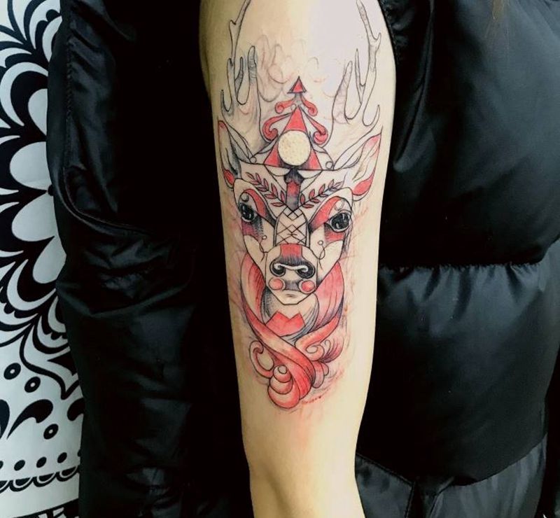 当前位置: 首页 >广东省广州市纹身店-TNT tattoo纹身图案>呦呦鹿鸣,食野之苹纹身图片_欧美几何动物成品纹身图案
