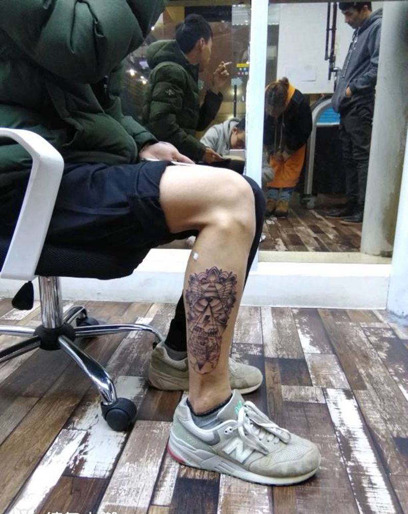 • T网红王老大花腿龙纹身图片_腿部新传统纹身图案