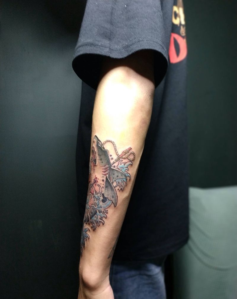 当前位置: 首页 >广东省广州市纹身店-TNT tattoo纹身图案>大鲨鱼纹身图片_手臂欧美写实New School纹身图案