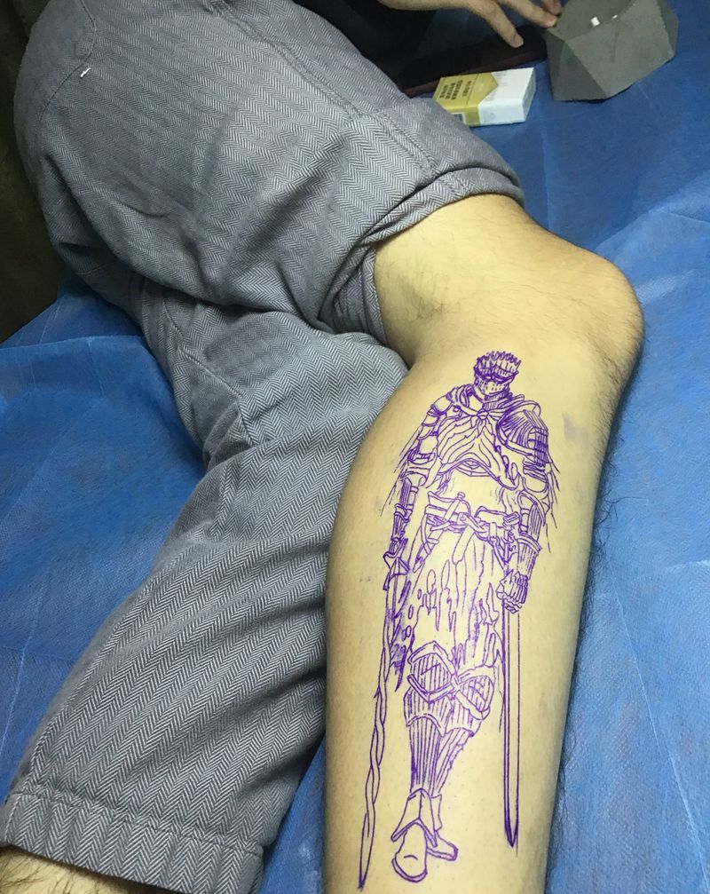 • T网红王老大花腿龙纹身图片_腿部新传统纹身图案