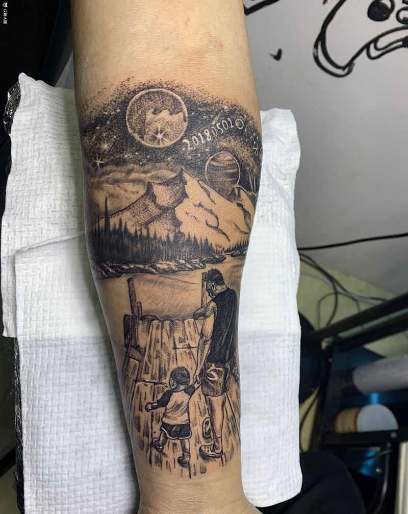 当前位置: 首页 >广东省广州市纹身店-覺者刺青纹身图案>父爱如山纹身图片_手臂欧美写实纹身图案