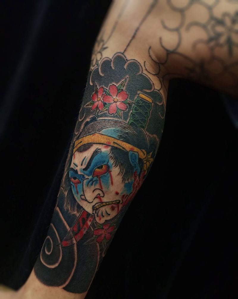 当前位置: 首页 >广东省广州市纹身店-覺者刺青纹身图案>日式生首包腿纹身图片_腿部老传统纹身图案