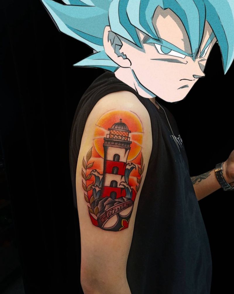 当前位置: 首页 >广东省广州市纹身店-覺者刺青纹身图案>灯塔纹身图片_手臂Old School纹身图案