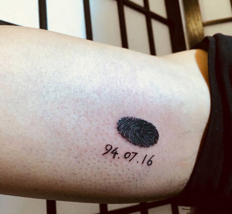 痛❤️纹身图片_手臂图腾几何清新指纹生日纹身图案