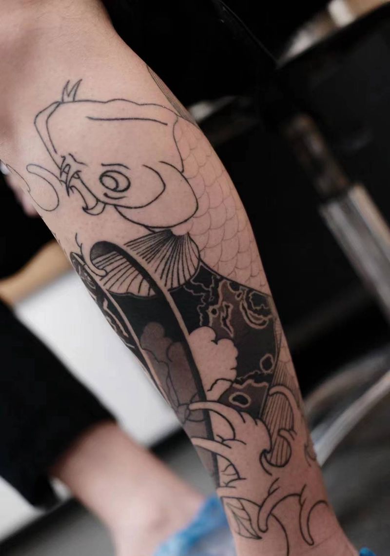 鲤鱼未完成。纹身图片_腿部纹身图案