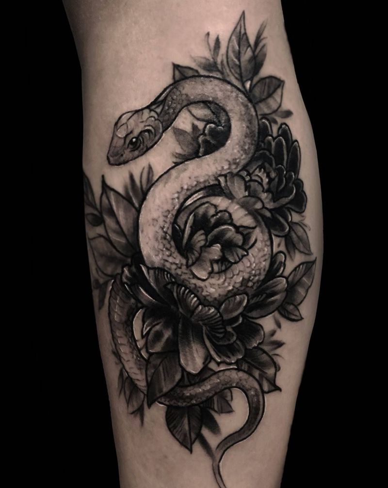 遮盖疤痕纹身图片_腿部欧美写实纹身图案