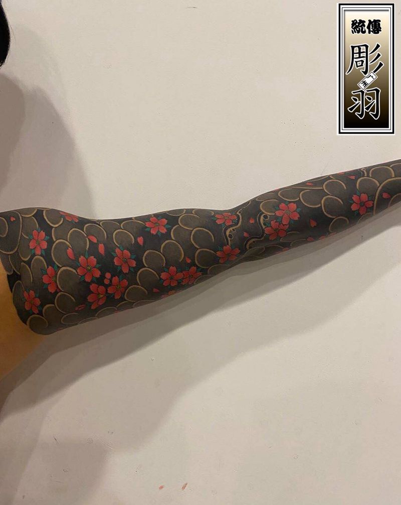 樱花臂恢复后纹身图片_手臂手部老传统纹身图案