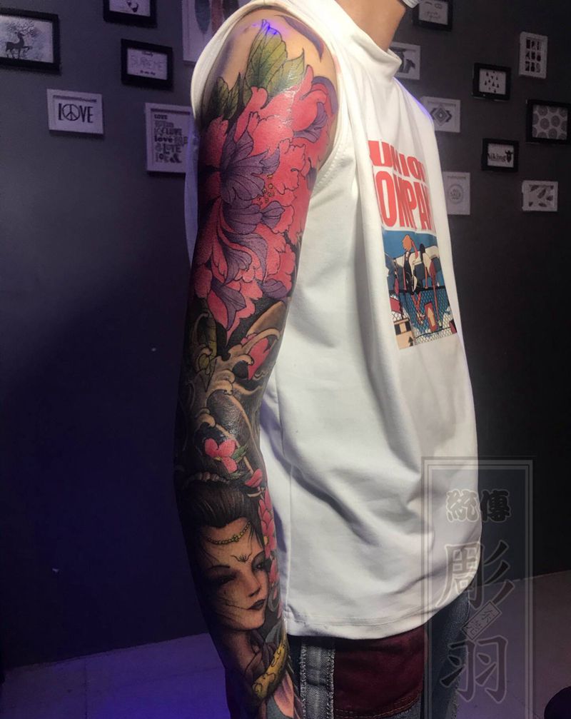 当前位置: 首页 >广东省广州市纹身店-墨刺青纹身图案>牡丹 艺妓花臂纹身图片_手臂手部新传统牡丹 艺妓纹身图案