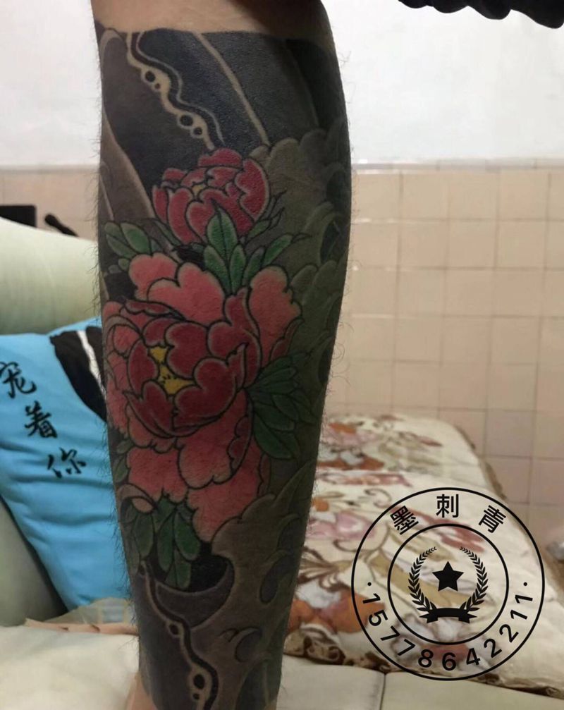 包小腿 恢复后纹身图片_腿部脚部老传统蛇 牡丹纹身图案