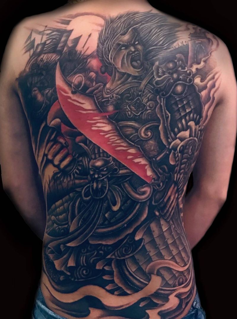 黑灰满背纹身图案