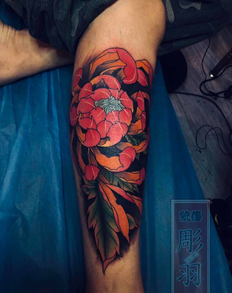 • T网红王老大花腿龙纹身图片_腿部新传统纹身图案