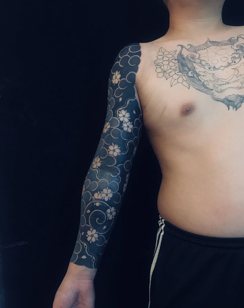 当前位置: 首页 >广东省广州市纹身店-墨刺青纹身图案>樱花臂未完纹身图片_手臂手部老传统纹身图案