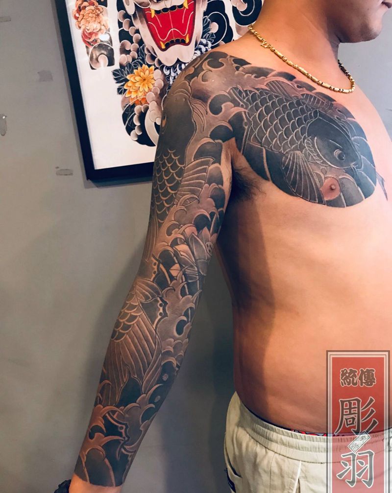 鲤鱼全甲纹身图片_手臂手部老传统鱼纹身图案