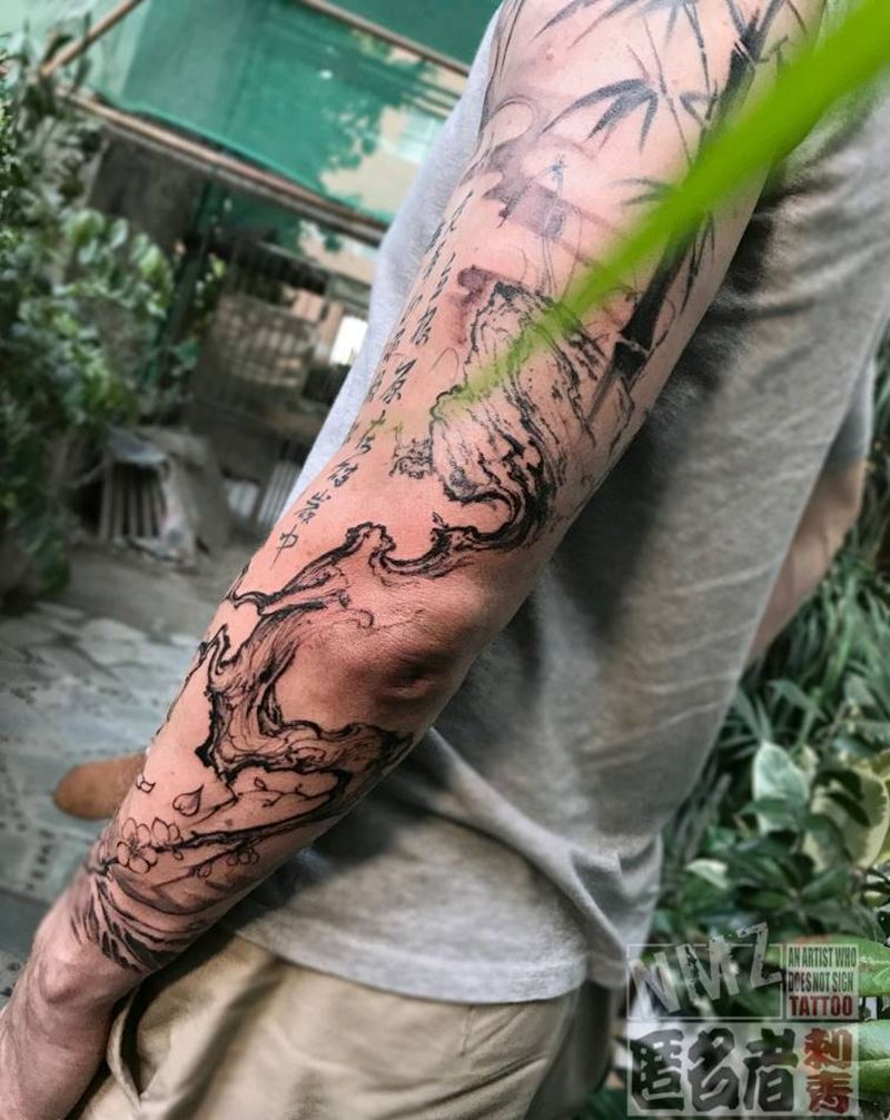 中式 花臂纹身图片_手臂手部老传统花臂中国文化纹身图案