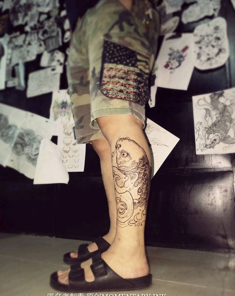 当前位置: 首页 >广东省广州市纹身店-广州匿名者刺青纹身图案>招财鲤鱼纹身图片_腿部传统国画动物原创艺术黑灰海娜成品纹身图案