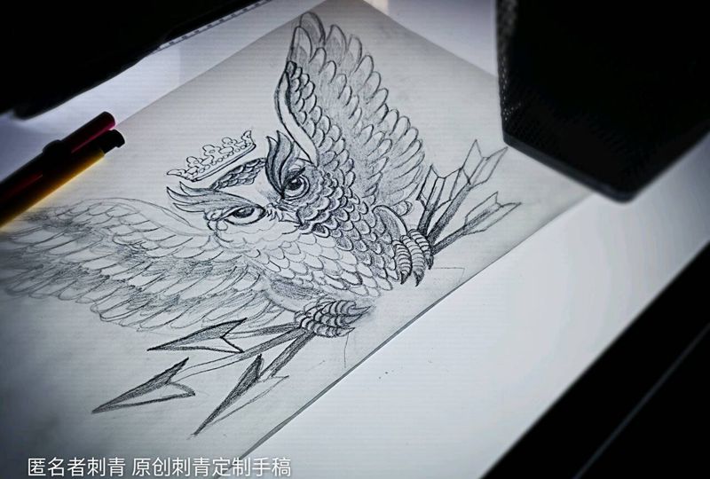 猫头鹰遮盖纹身图片_肩部欧美传统动物原创成品手稿纹身图案