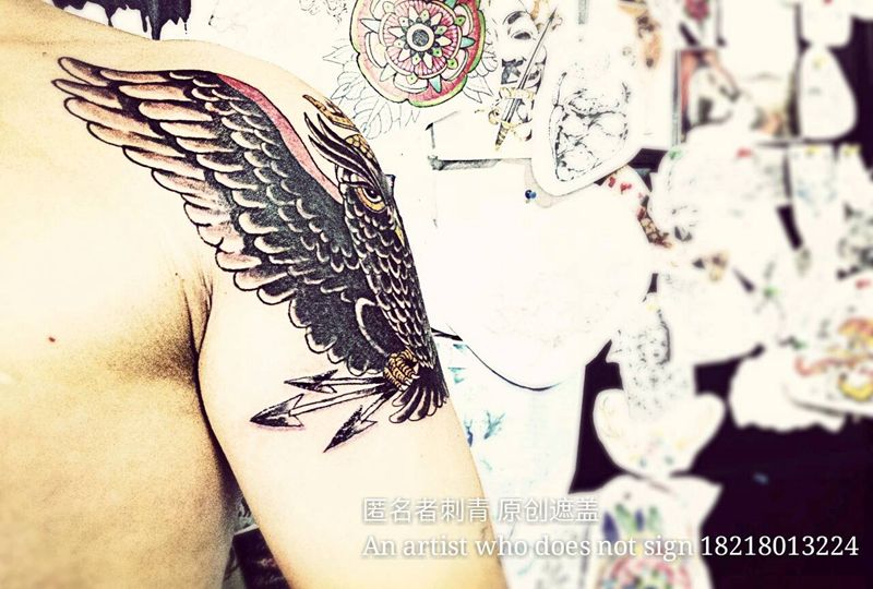 当前位置: 首页 >广东省广州市纹身店-广州匿名者刺青纹身图案>猫头鹰遮盖纹身图片_肩部欧美传统动物原创成品手稿纹身图案