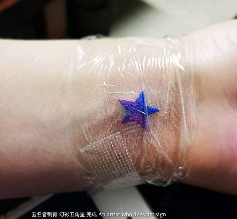 幻彩五角星纹身图片_手臂欧美清新几何原创幻彩成品纹身图案