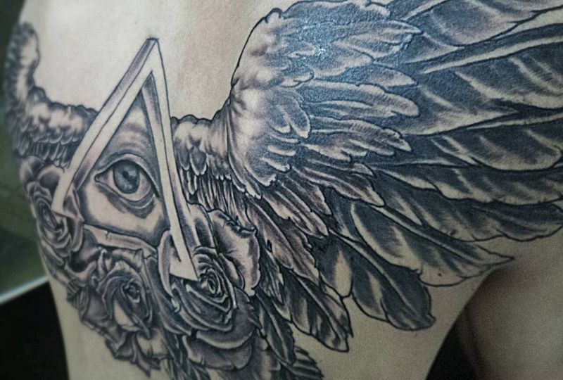 ALL SEEING EYE纹身图片_背部欧美写实原创广州成品纹身图案